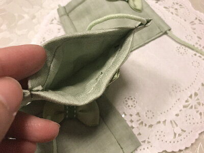 フィルターを入れるポケットを付け、表と裏の両方にプリーツを付けている為、厚みが出てしまい、所々難がある場所があります。
